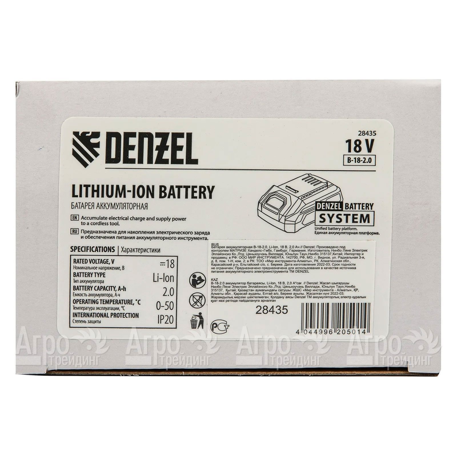 Характеристики товара: Батарея аккумуляторная B-18-2.0 для аккумуляторной техники Denzel