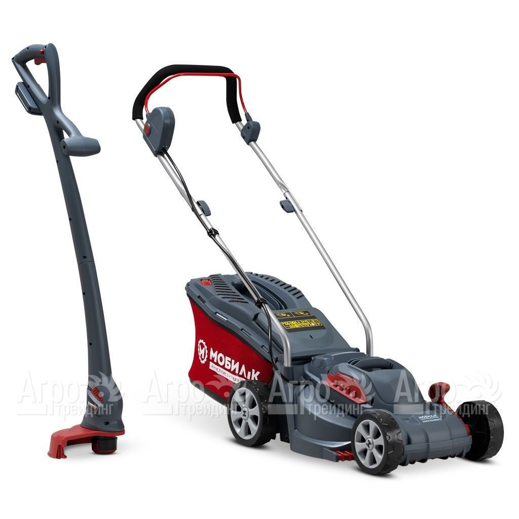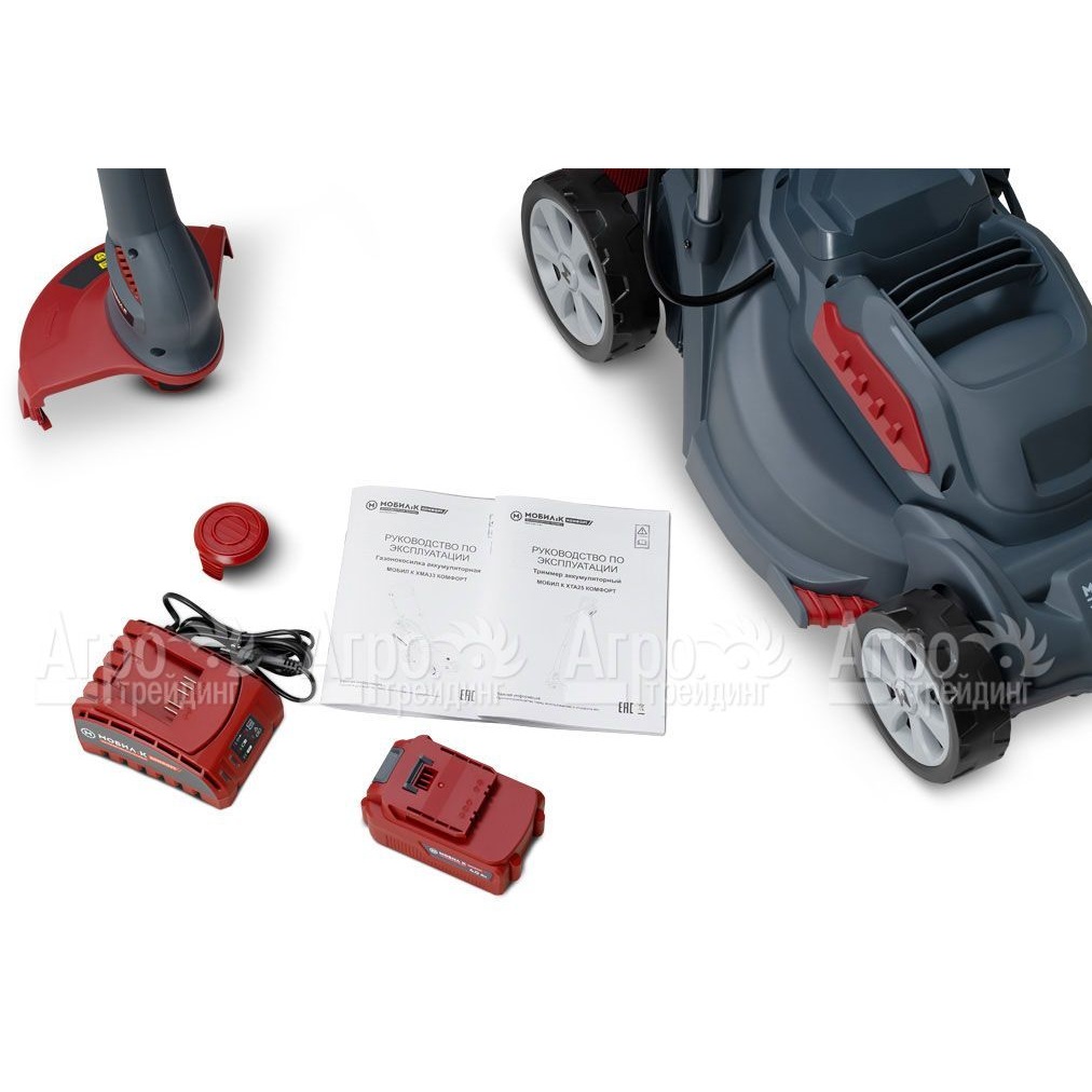На фотографии Газонокосилка аккумуляторная Мобил К XMA33 Комфорт + триммер XTA25 Комфорт: