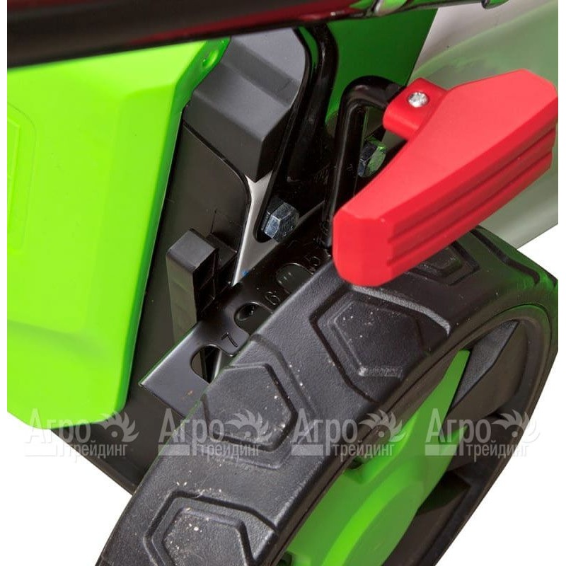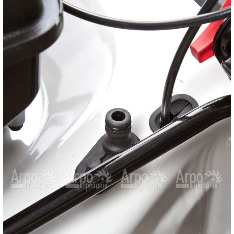 Газонокосилка оборудована съемным жестким пластиковым травосборником, благодаря чему уход за ней не является сложным или трудозатратным мероприятием. К достоинствам модели также необходимо отнести простоту регулирования высоты покоса – всего одним рычагом. Все колеса широкие, а задние еще и увеличенного диаметра, что делает ее маневренной и проходимой – это актуально для неровных участков.