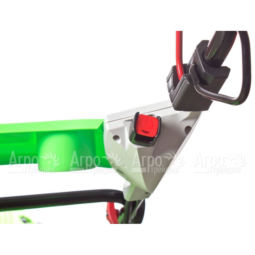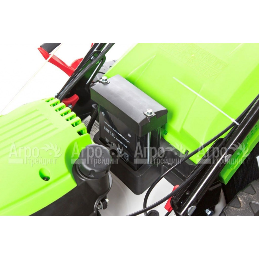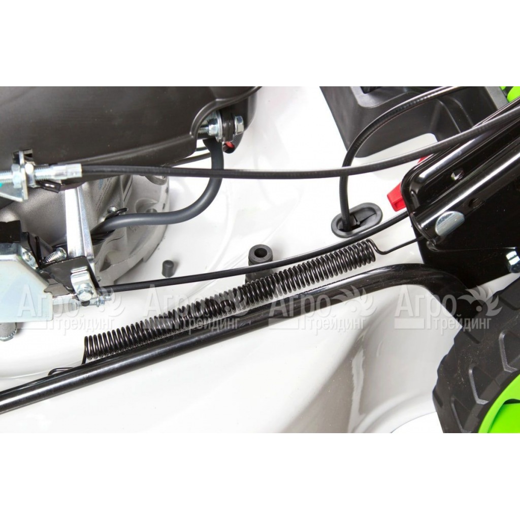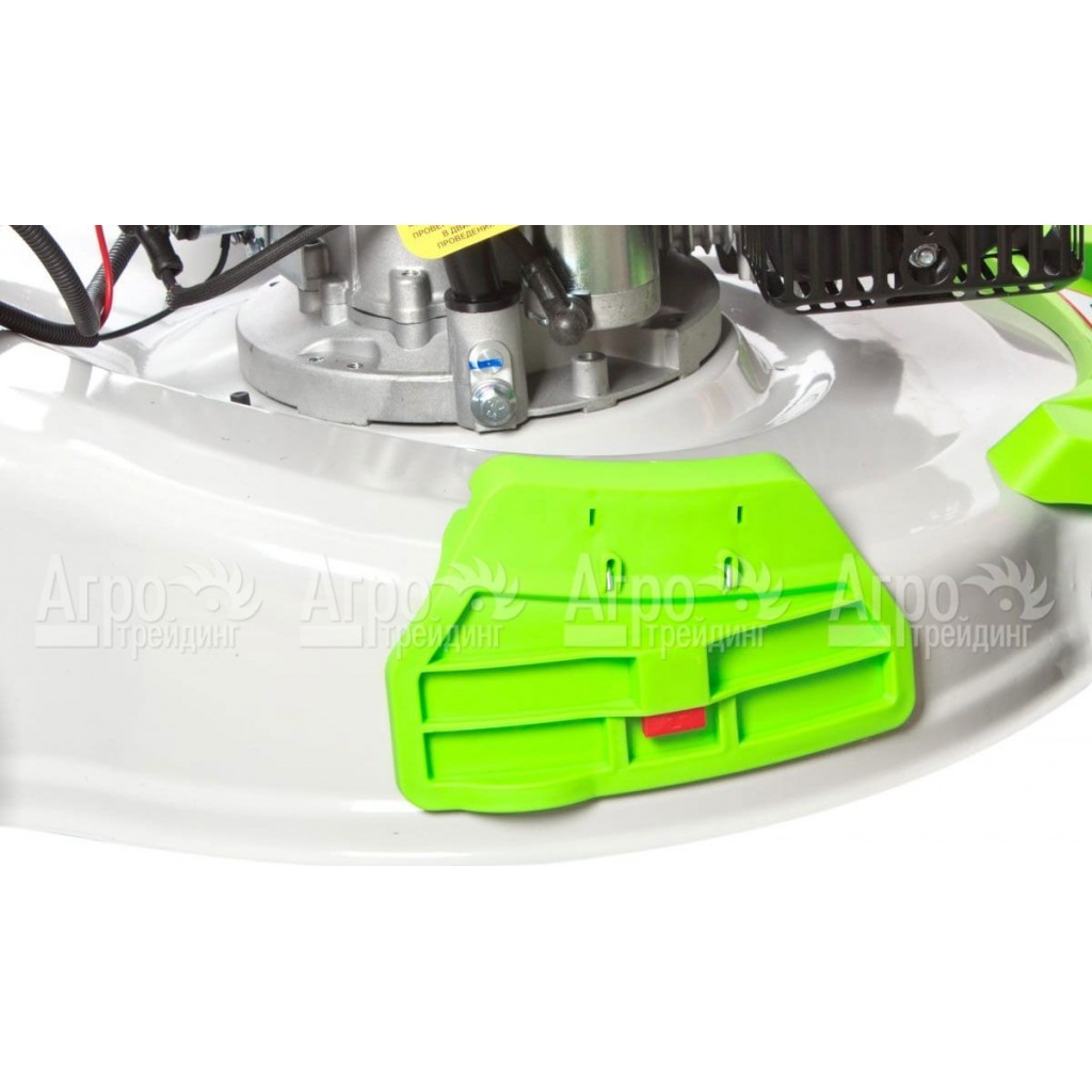 В основе газонокосилки лежит современный двигатель внутреннего сгорания. Мотор надёжен в эксплуатации, потребляет немного топлива и легко запускается в любых условиях. При этом есть возможность пуска с помощью ручного стартера или кнопкой, от аккумулятора. В качестве режущего инструмента используется классический роторный нож. Его лезвия длительное время сохраняют свою остроту, режут траву быстро и аккуратно. После прохода косилки за ней остаётся полоса ухоженного газона.