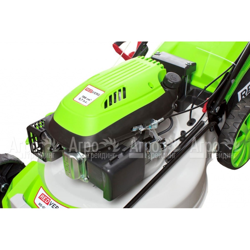 На фотографии Газонокосилка бензиновая RedVerg RD-GLM56SE: