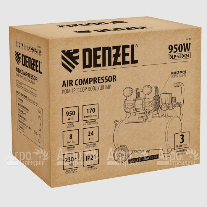 Компрессор поршневой безмасляный Denzel DLP-950/24